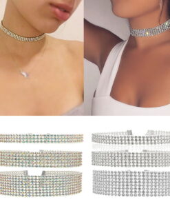 Crystal Rhinestone Choker Necklace Women Accessories Silver Chain