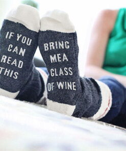 - Custom made to order with IF YOU CAN READ THIS on one sock and BRING ME A GLASS OF WINE on the other sock.