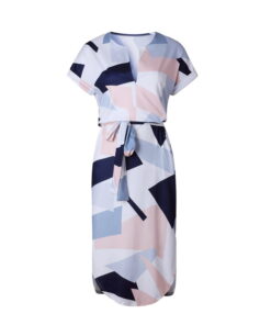 Dress Casual Asymmetrical Geometric Printing Short Sash Knee-Length