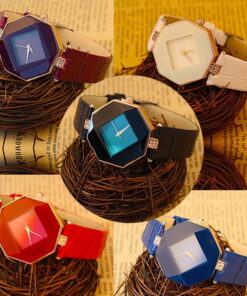 Luxury Women Watches Gem Cut Geometry Crystal Leather Quartz