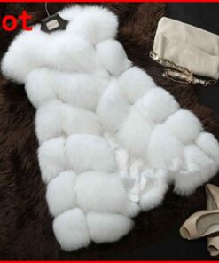 • Women’s Gilet Outwear Long Slim Vest Faux Fox Fur Waistcoat Jacket