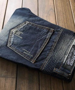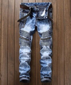 NOTE: Please allow 1-3cm differs due to manual measurement, thanksMen’s Pleated Biker Jeans Pants Slim Fit Brand Designer Motocycle Denim