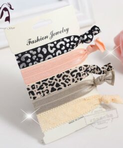 - The elastic hair ties includes 5 pack of different solid colors including green, pink, red, black, yellow, orange, purple ,brown ,gray ,leopard print, blue and many others.
