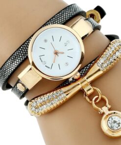 2 reviews for Rhinestone Gold Bracelet Women Watch Pu Leather Ladies Quartz Casual